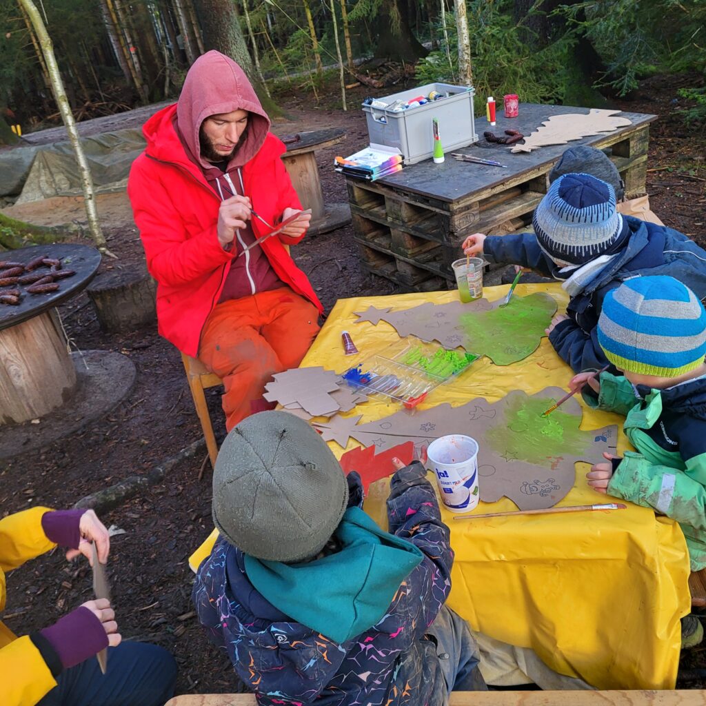 Bild 3: Auch die Kinder des Waldkindergartens Waldkäfer gestalten die Weihnachtsbäume.